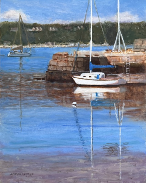 “Rockport Afternoon” is a n 11×14 painting I did of a sailboat moored in Rockport. I happened to be walking by and noticed this scene in between two buildings. Hardly noticeable from the street and if you didn’t glance over, you would miss it.